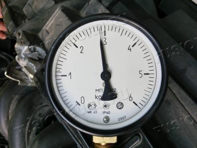 Перекрываем краник на нашем приборе и включаем зажигание. Мне пришлось 2 раза включить. Так мы измеряем давление на насосе.