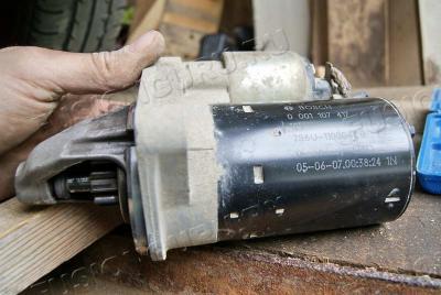 Вытащил, с манёврами, стартер. Он не большой, но массивный. Бош, однако, сделан немцами.