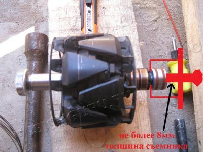 5)Задний подшипник съемником выпрессовывается с якоря.