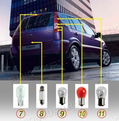 | 9 | Задний ход; задние ПТФ | P21W | 21 | BA15s | 12498 | 7506 |