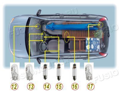| 17 | Подсветка багажника | W5W | 5 | W2,1x9,5d | 12961 | 2825 |