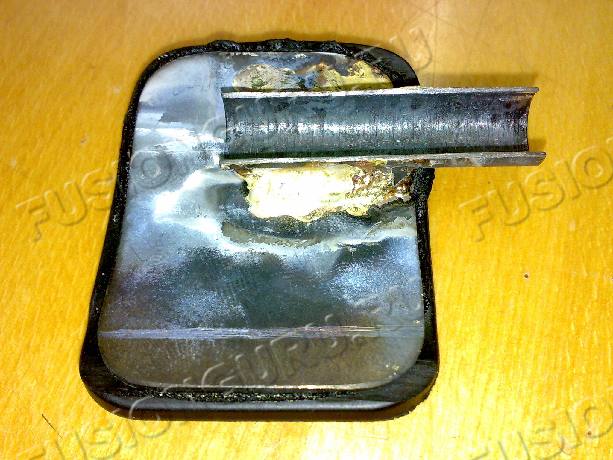 Для того, чтобы не приклеивать родную ручку к металлическому основанию, на пока ещё горячую после сварки железку прижал пластмасску.