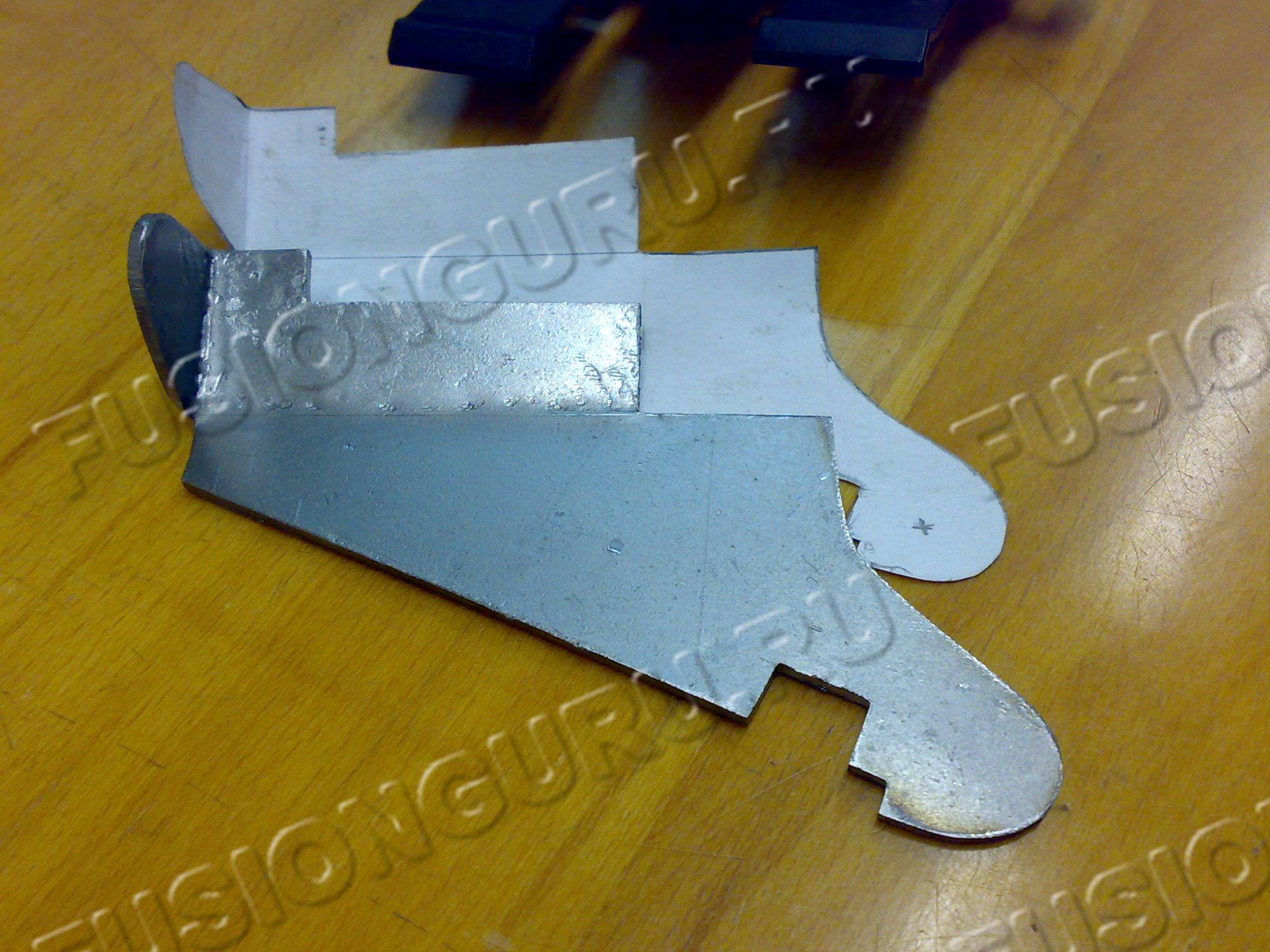 Потом занялся усилителем самой ручки, вырезав металлическую пластину чуть меньшего размера.