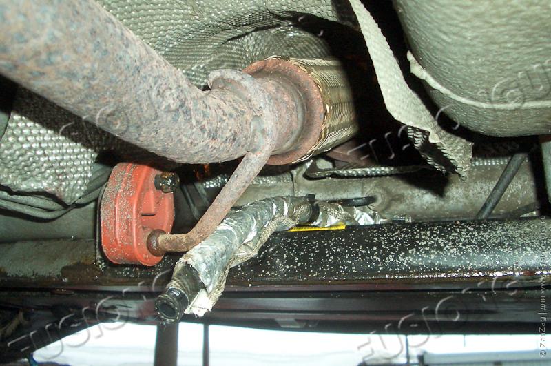 Часть шланга с теплозащитой проходит вдоль рулевой рейки (ну или что там у нас? короче, поперек автомобиля).