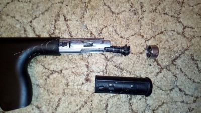 Как только снялся пластик рукояти, вся тяга легко вылезает из металла, надо лишь пружинку сжать малек, чтобы не мешала.
