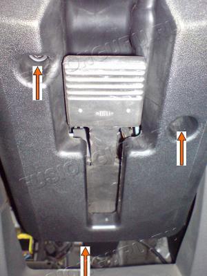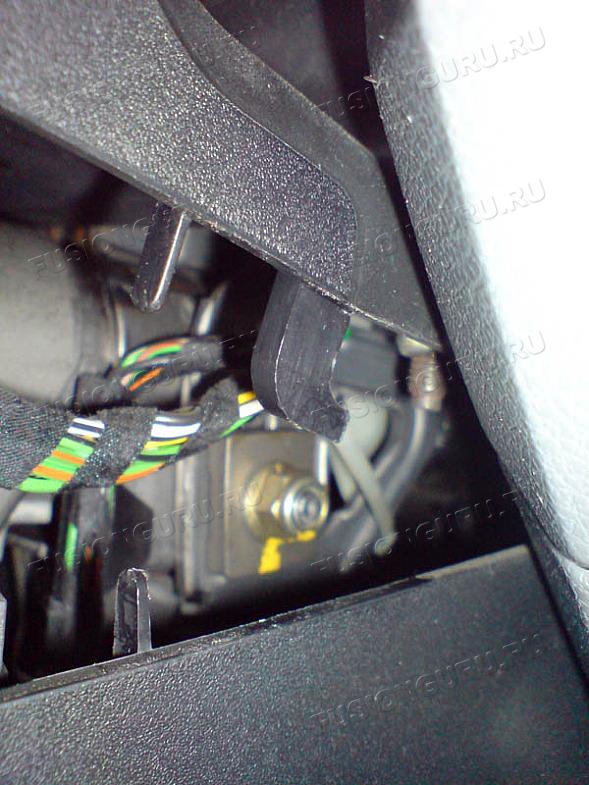 Для снятия модуля ПБ (подушки безопасности), с обратной стороны руля, отверткой через два отверстия отводим фиксирующую пружину.