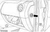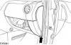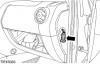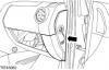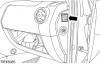 17. Прикрепите новую этикетку, входящую в соответствующий комплект (см. "Требуемые запасные части и материалы"), к крайней боковой панели отделки панели приборов со стороны пассажира. ( № запасной части 2U5A 14B372 AA)