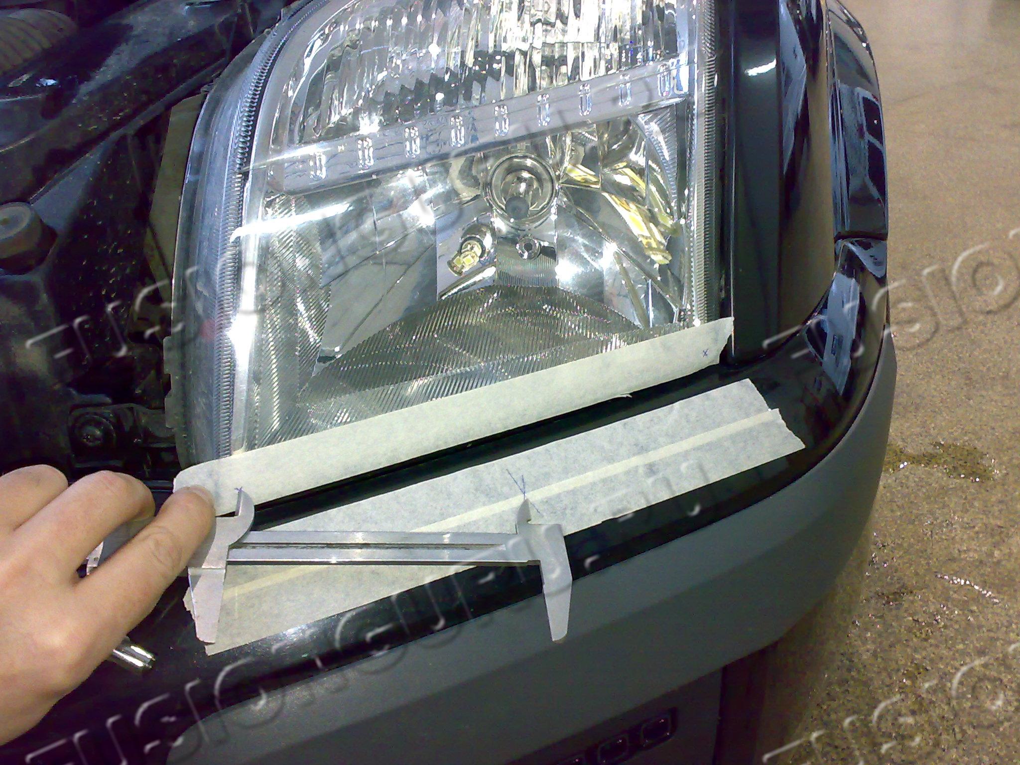 Вокруг намеченного центра бампера под каждой фарой обвёл контур будущего положения сопел форсунки...