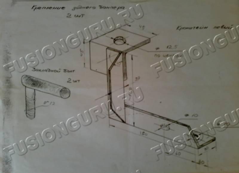 При несовпадении чертёжных размеров кронштейнов декоративно-защитных труб представленных в этой статье и мест размещения технологических отверстий в днище Вашего ФордФьюжн -рекомендуется произвести подгонку по месту.
