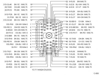 - Блок управления силовым агрегатом (PCM) - 4-цилиндровый двигатель (зеленый с желтой полосой, разъем С343, пин F8)