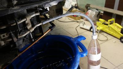 6. Соорудил "девайс" для слива ATF (шланг от стиральной машины, для плотной посадки - изолента в пару слоев на трубку радиатора)