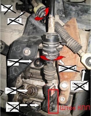 При движении рычага КПП в салоне влево вправо (вдоль нейтрали) рычаг КПП застревает как раз в промежутке между 1-ой и 3-ей, а дальше его приходится с силой проталкивать. Ниже на картинках я описал что я имею ввиду под словами шток, влево-вправо и т.д.