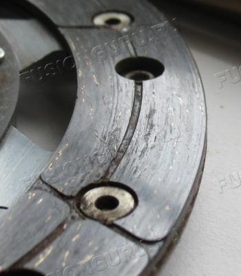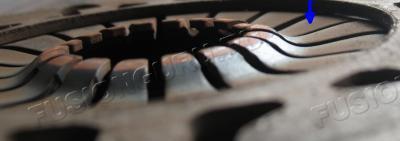 На фото можно обратить внимание на ёлочку чёрных следов на ведущем диске, ёлочка на половину окружности диска, на половину.