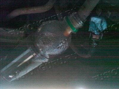 После слива жидкости из бачка, заглушил трубку пробкой из полиэтиленового пакетика (первое, что подвернулось под руку). Трубку слива жидкости с рейки опустил в бутылочку: