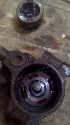 Была радиальная выработка на двух деталях, которые прижимают барабан с пластинами с торцов. Перепад был в пару десятых миллиметра и чувствовался наощупь. Пришлось снимать слой на довольно грубой наждачке, и уже под конец - на мелкой, для придания гладкости. Вдобавок немного шлифанул торцы барабана.