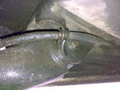 Ты про это?olegkrsk писал(а):Он в районе задней балки заведен в косой зарез (сам в этом зарезе держится за счет резиновой втулки - по форме напоминающей катушку для ниток).
