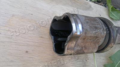 Надел на вал ребром проставки упер в трипоид, затем надел съемник. Вслед за съемником зажал вал газовым ключом, но не сильно. Газовый ключ служил ограничителем. Начал крутить упорные болты съемника. Трипоид сначала не выходил и вся конструкция (этакий поезд) двигались по валу. Затем газовый ключ уперся в расширение вала и трипоид начал сдвигаться. Так его и снял. Очень просто. Сидит очень плотно, без ограничителя фиг бы снял. Вот он, свеже-снятый трипоид.