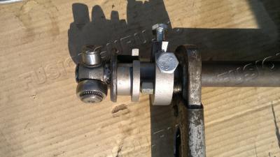 Вытащил полуось целиком. Пыльники решил менять через внутренний ШРУС. Для снятия трипоида купил съемник ШРУСов для ВАЗ 2108. А также изготовил проставку, чтобы съемником не повредить ролики (на толстую шайбу наварил обрезок трубы. Пришлось немного разогнуть, труба была маловата).