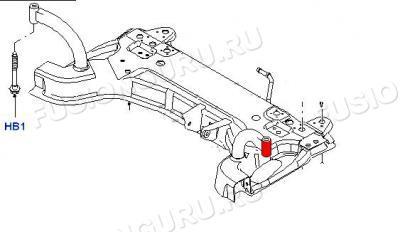 Подскажите, пожалуйста, есть ли какой-нибудь официальный регламент компании форд как поступать если срезалась резьба (обвернулась гайка) в верхней части крепления подрамника (на рисунке место отмечено красным).