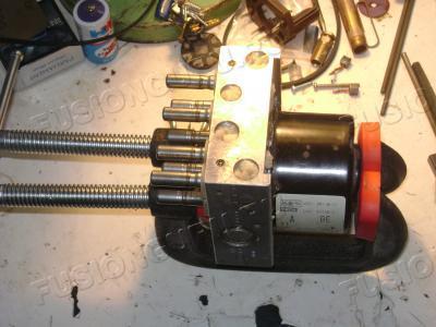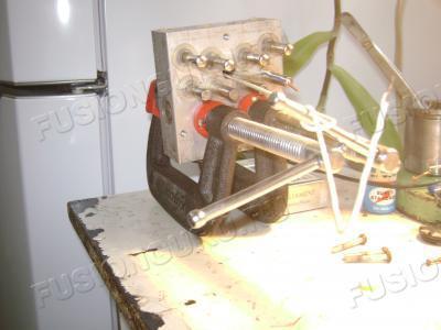 На гидроблоке из дренажной дудки торчит невставленный в дудку фетр, игольчатый набил медной смазкой: