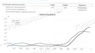 Вообщем вывести какие результаты по тормозным усилиям на каждую ось (колесо) для Фьюжена считаются нормой.
