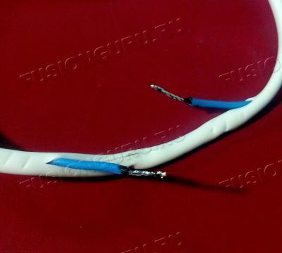По середине разрезал синий провод и залудил оловом концы (чтобы были твердыми и хорошо держались в пинах разъема).
