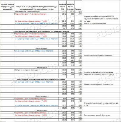 Второй тест делался 21.01.18 в -25с (простой автомобиля около 2 суток)