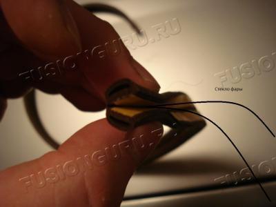 и прикладывая небольшое усилие поставил обратно стекло, стягивал края секла в сторону корпуса фары до защелкивания 4-х ушек стекла.