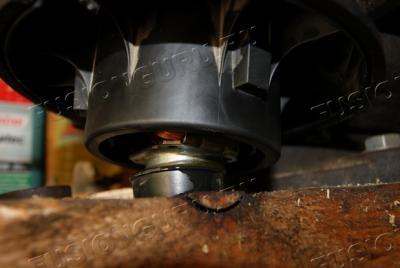 5. Зажимаем в тиски два длинных болта 6-8мм, продеваем через крыльчатку и упираем в корпус моторчика, после чего аккуратно расклепываем как было.