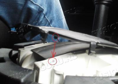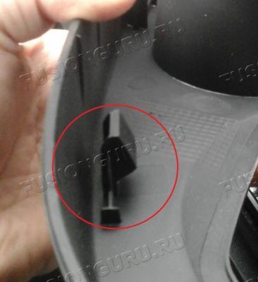 Маленькой шлицевой отвёрткой поддеваем защёлки (в красных кружочках). Затем слегка потянув назад высвобождаем последние пазы (зелёные кружочки)
