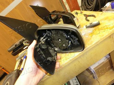 На форумах масса материалов с фотографиями и детальными инструкциями по разборке дорестайлинговых зеркал, а у рестайла (машина 2010 года с большими зеркалами) другая конструкция зеркала.
