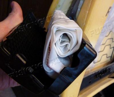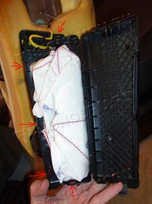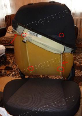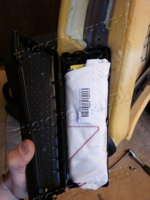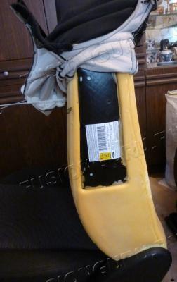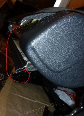 Подтягиваем еще вверх чехол и на правом боку кресла начинает показываться боковая подушка безопасности (фото8, 9).