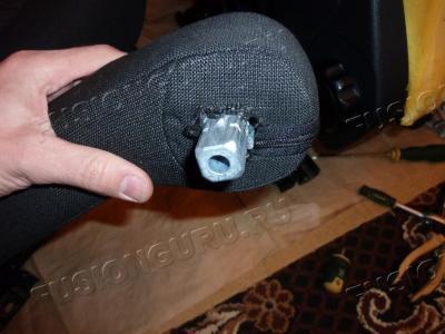 На фото17 (здесь для наглядности чехол уже снят) виден стопор, чтобы его оттянуть нужно острогубцами сверху залезть в щель между спинкой и подлокотником и потянуть стопор вверх и вытащить подлокотник вбок. Вот как выглядит подлокотник (фото18).