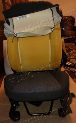 И так, замена подушки после первого раза разборки-сборки займет у вас 10 минут. Даже не снимая кресла с машины. Поэтому при покупке б.у. машины нужно либо вот так залезть и проверить наличие не сработавшей подушки, либо как я .. самостоятельно заниматься изучением системы безопасности и искать где-бы подешевле купить подушку (14т.р.!). В офицальном Форд-сервисе я просил продиагностировать подушки, на что они ответили - мы можем подать 12В и отбежать. Логично, поскольку подушки двухпроводные, ни какой электроники внутри них нет, поэтому их ни как не проверешь, кроме как разбирать и оценивать по виду и именно виду самой подушки, а то поставят по дороге резюк 2 Ома (как мне подсунули) и будешь думать что все в порядке.