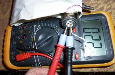 Измеряем сопротивление (фото29) - белая пластиковая проволочка - это я разомкнул замыкатель. Как и положено 2 Ома.