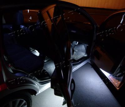 Подсветка дверей и ног от плафонов, в ручках от габаритов. В низу двери простая св-д линейка без силикона, собственно она же везде
