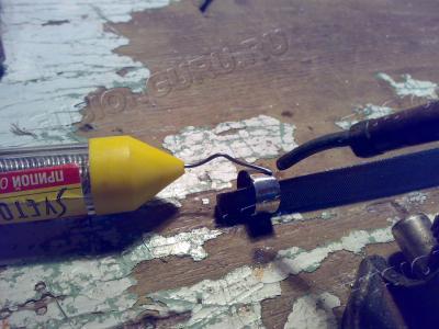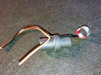 3. К кольцу припаивается провод и пропихивается через проделанное отверстие в резиновой втулке