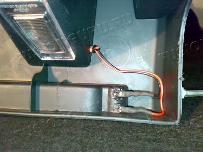 5. К ним припаиваются провода (один на плюс плафона, другой на любую массовую точку кузова)