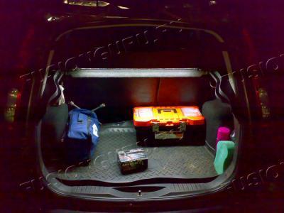Фидель, когда я решился добавить себе в багажник яркости то пошел немного другим путем, врезал в пластмассовую обшивку двери багажника 2 плафона, типа штатного но по длиннее и с выключателем. Купил 2 очень яркие светодиодные лампочки и все. Запитал все это от штатного плафона.