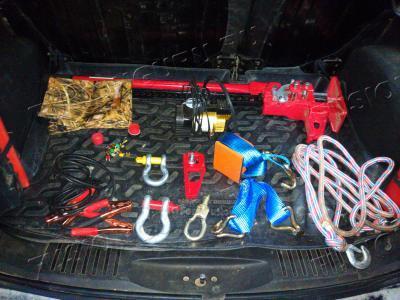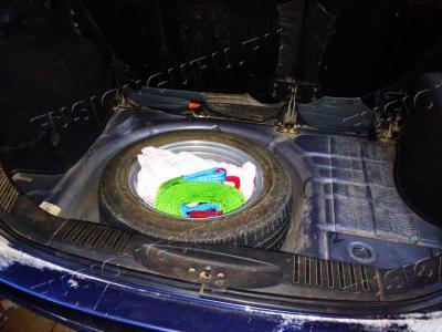 Итак под полом перевернутое колесо 195/60r15. В него положил завернутый в тряпку домкрат и балонник, плюс запасной или иногда как удлинительный 5 метровый трос на 12тонн (основной у меня 8тонный).