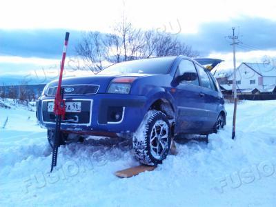 Пятку хайджека надо дальше запихивать под машину, все таки в снегу чуть чуть уползает потом из под машины и криво встает он. Но ничего место до бампера еще было и конструкция стояла твердо. В следующий раз уже будет опыт.