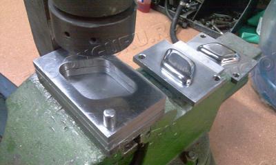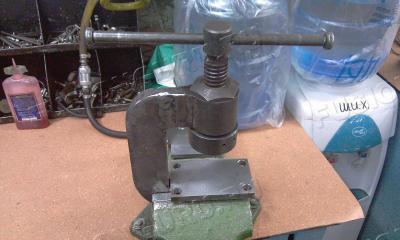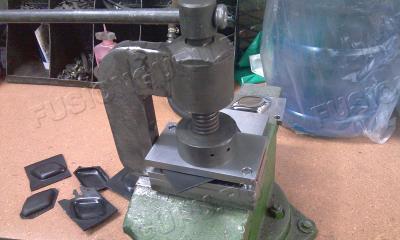 Матрица с пуансоном, "в век когда космические корабли бороздят..."(С), прилаженные к гидравлическому домкрату - удобнее и не привязаны к тисам.