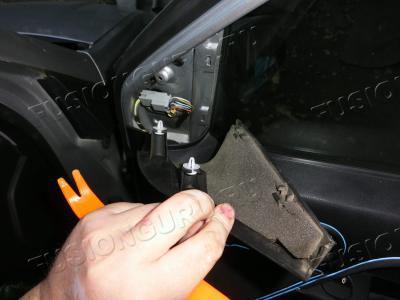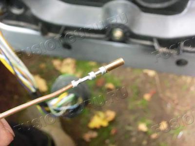Переходим к проводам. Самое сладкое. Форд не планировал даже повторители. Увы, проводов нет. Скажу даже более, если с правой стороны нет кнопок складывания и питания управления зеркалами, то слева реальный фул в разъеме. Мест нет и пришлось колхозить из фторопластового провода через тонкий центр пропускать.