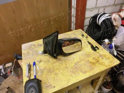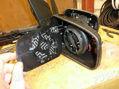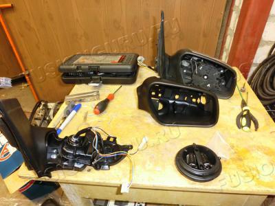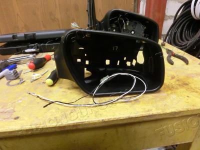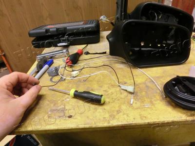 Нужные нам детали от зеркала - проводки кусок и кузовная часть, в нее монтируется сам повторитель, его мы сняли очень давно.
