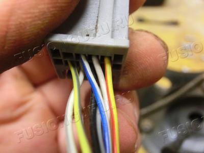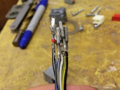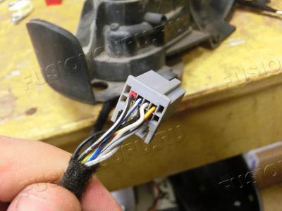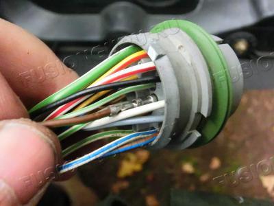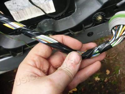Перемонтируем свой жгут. Массу режем и стыкуем с массой от нового зеркала, где раздвоение, так как пины разъема не подходят, да и длина разная. Затем находим на разборки лишний пин, его прикручиваем к белому проводу от повторителя. Помечаем для себя (ведь цвет совпал с другим), собираем жгут взад.