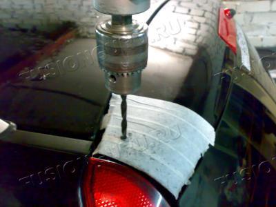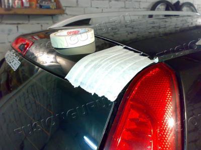 Подготовил поверхность крышки багажника к установке спойлера.