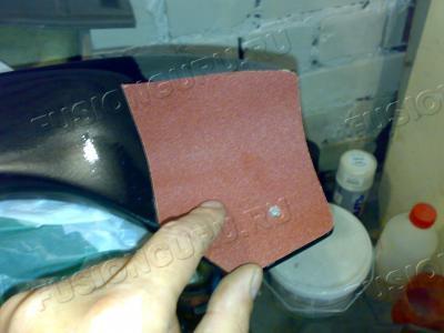 Вырезал из находившейся под рукой наждачки лекало, для того чтобы правильно рассчитать место будущего отверстия.