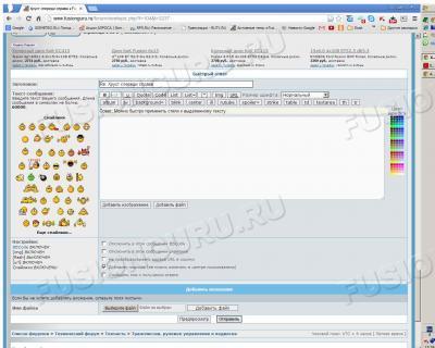 Расскажите пожалуйста как пользоваться многочисленными кнопочками по периметру поля сообщения. Об очевидных можно не упоминать (цвет,размер, спойлер, смайлы) Или укажите где это все можно посмотреть
