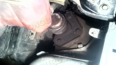 заодно сфоткал место под расширительным бачком, там какое то темно разлитое маслянистое пятно) может опора двигателя потекла или от гура жидкость. так как заметил что всетаки жидкость гура сочится из бачка и попадает на ремни генератора, как можно с этим боротся, ссылку сможет кто то дать?)