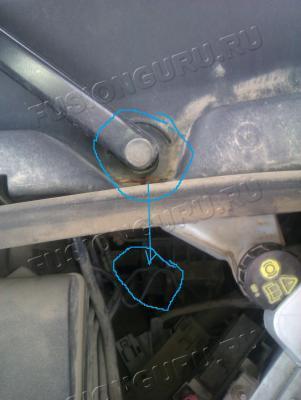в жабо отверстие для дворника ,через это отверстие вода течёт сюда